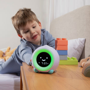 MELLA is an all-in-one kid's clock and sleep trainer designed especially for parents who miss sleeping in.