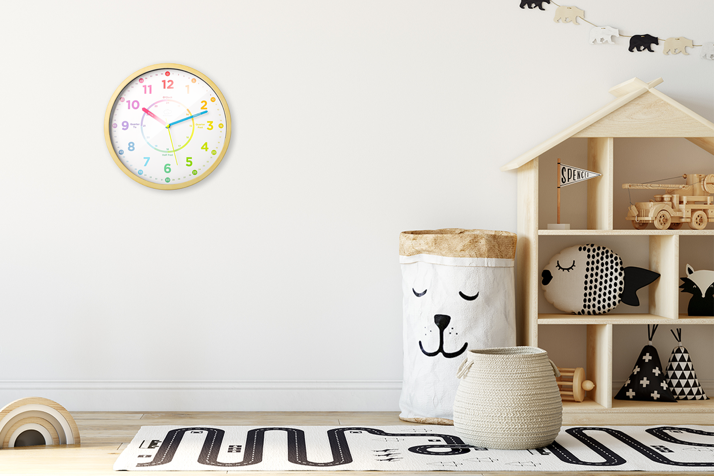 • CLEARLY MARKED AND EASY TO READ – Our kids wall clock has everything you need to teach children time. The hour and minute hands and quarters are clearly labeled, and allows for teaching both standard and military time.