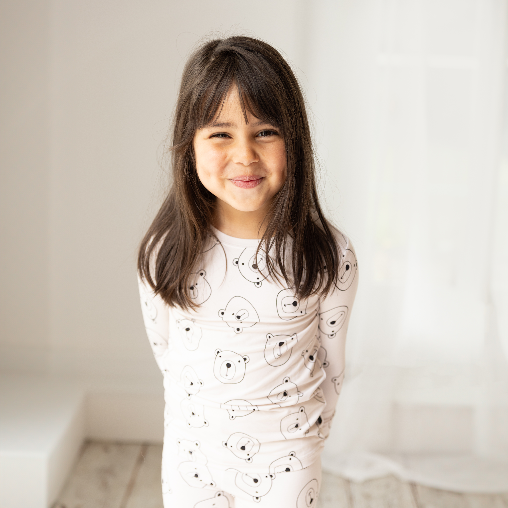 Our pajamas feature extra long sleeves to accommodate your growing child. We recommend purchasing true to size.